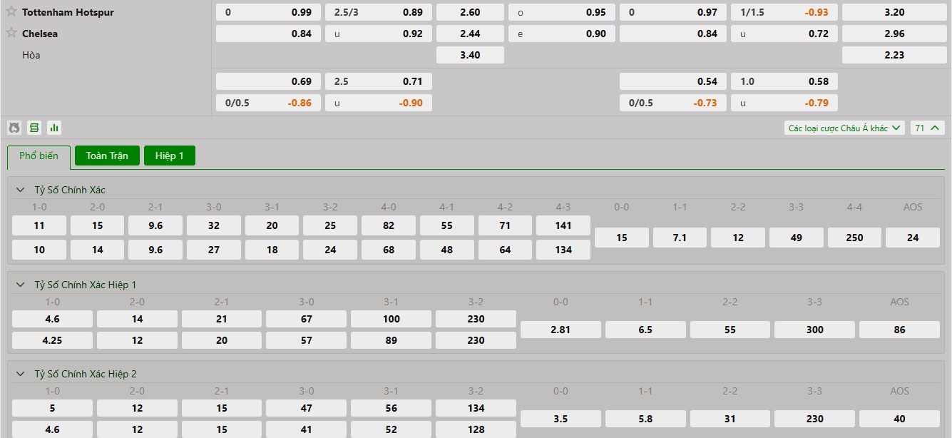 Soi kèo hiệp 1 trận Tottenham vs Chelsea