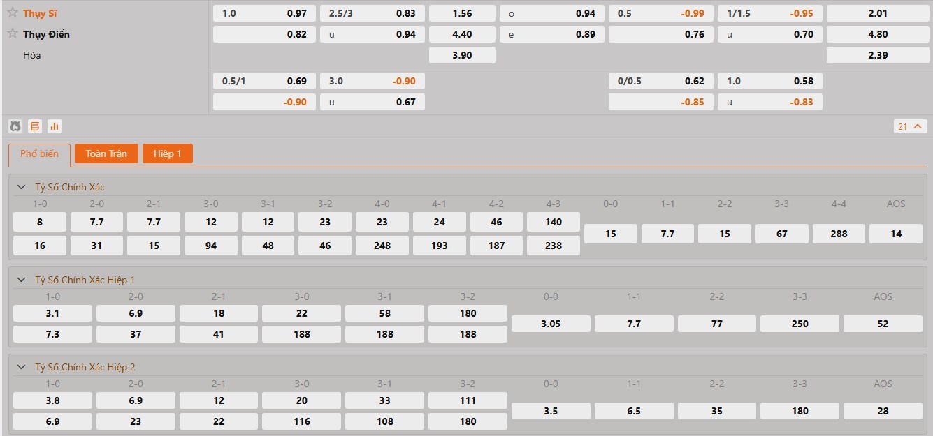Soi kèo hiệp 1 trận Thụy Sĩ vs Thụy Điển