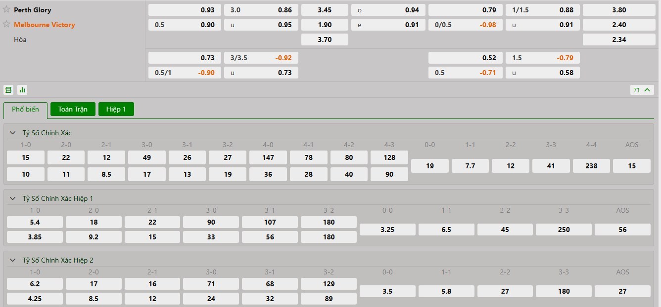 Soi kèo hiệp 1 trận Perth Glory vs Melbourne Victory